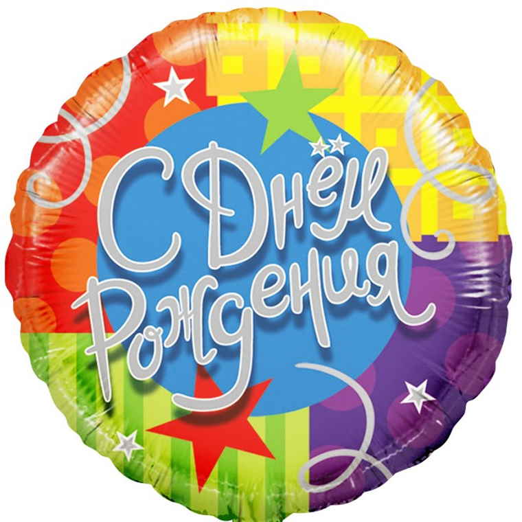 Шар (18''/46 см) Круг, С Днем Рождения. Звезды и ленты