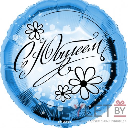 ----Шар (18''/46 см) Круг, С Юбилеем, ромашки, Голубой