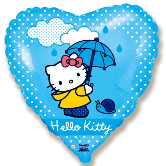 ----Шар (18''/46 см) Сердце, Котенок с зонтиком, Голубой