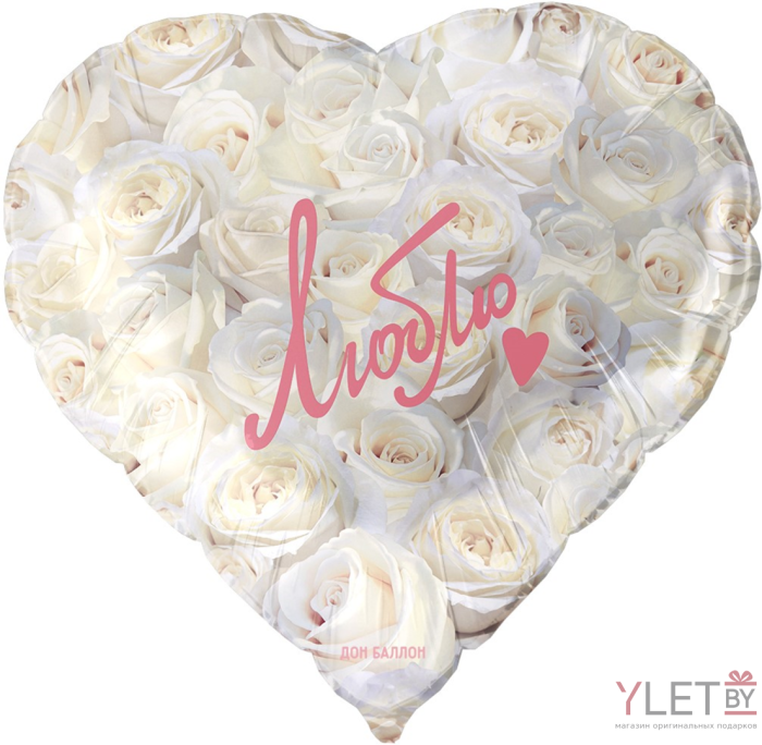 Шар (18''/46 см) Сердце, Люблю (симфония роз), Белый