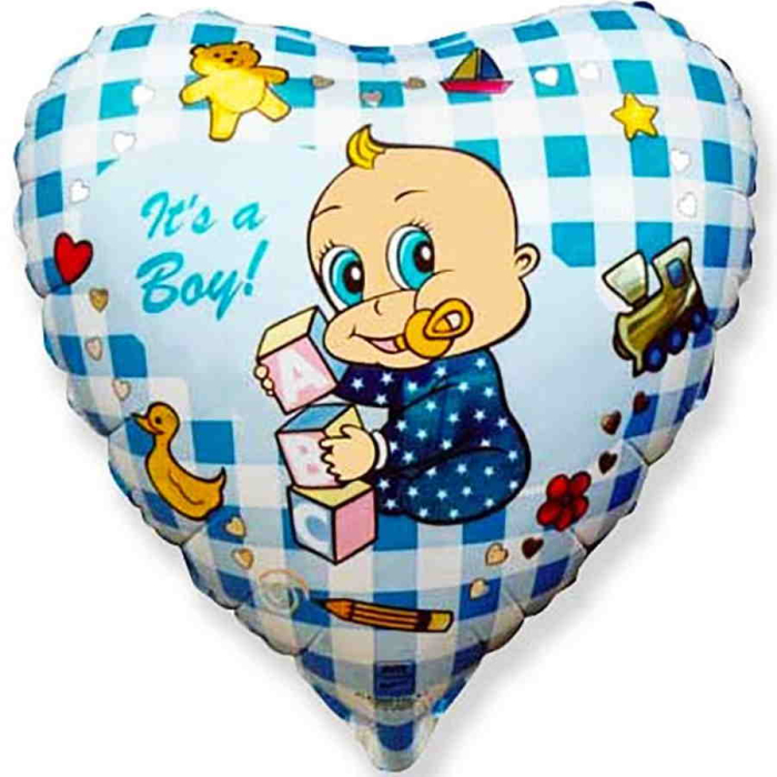 Шар (18''/46 см) Сердце, Новорожденный мальчик, Голубой