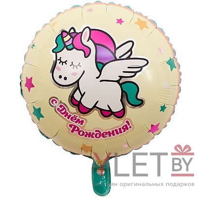 Шар 18" Круг, С Днем рождения. Единорог спящий