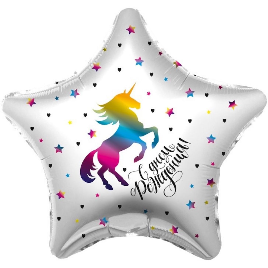 Шар (19''/48 см) Звезда, С Днем Рождения! Радужный единорог