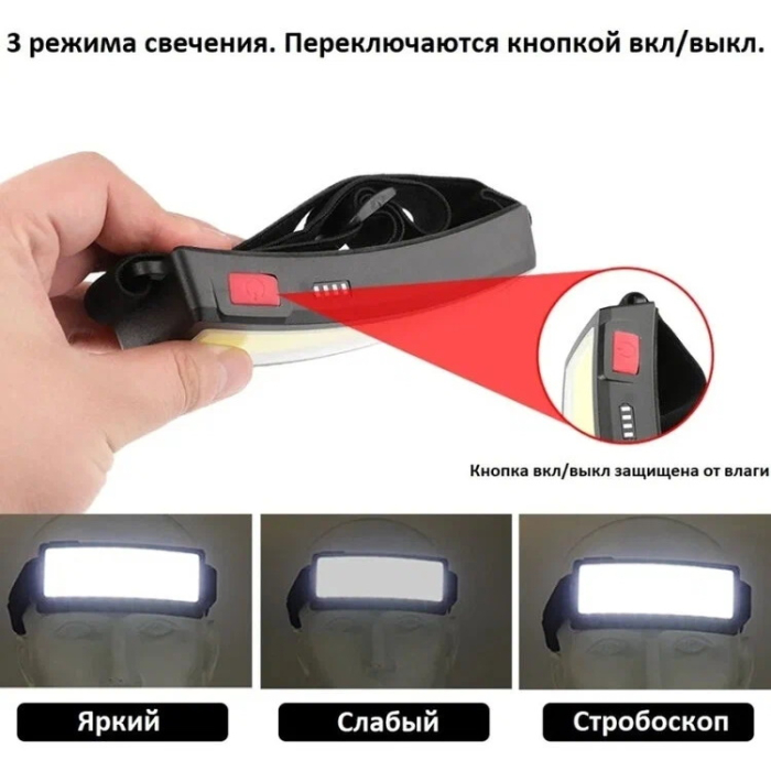 Фонарь налобный светодиодный по технологии COB, со встроенным аккумулятором.