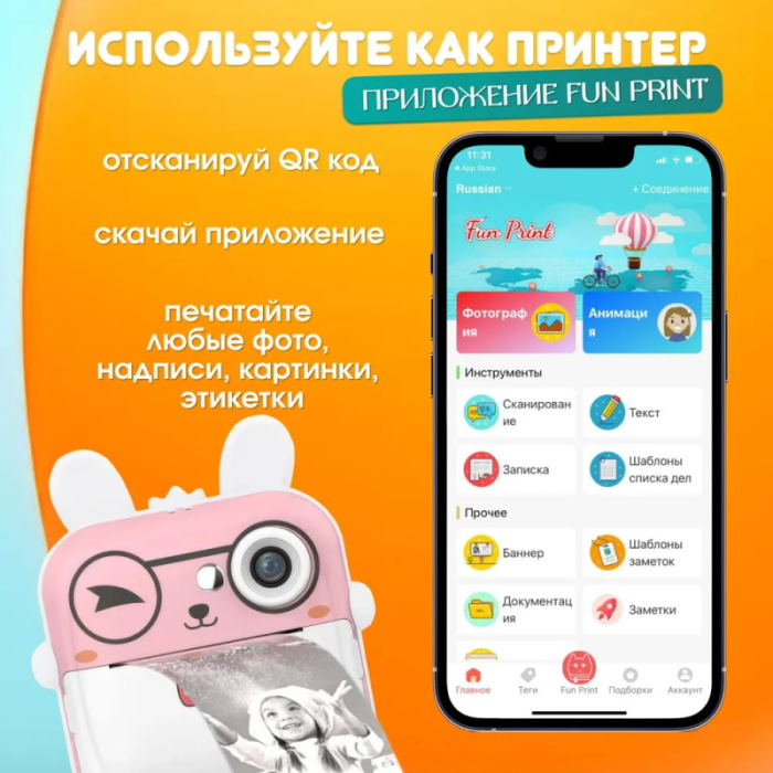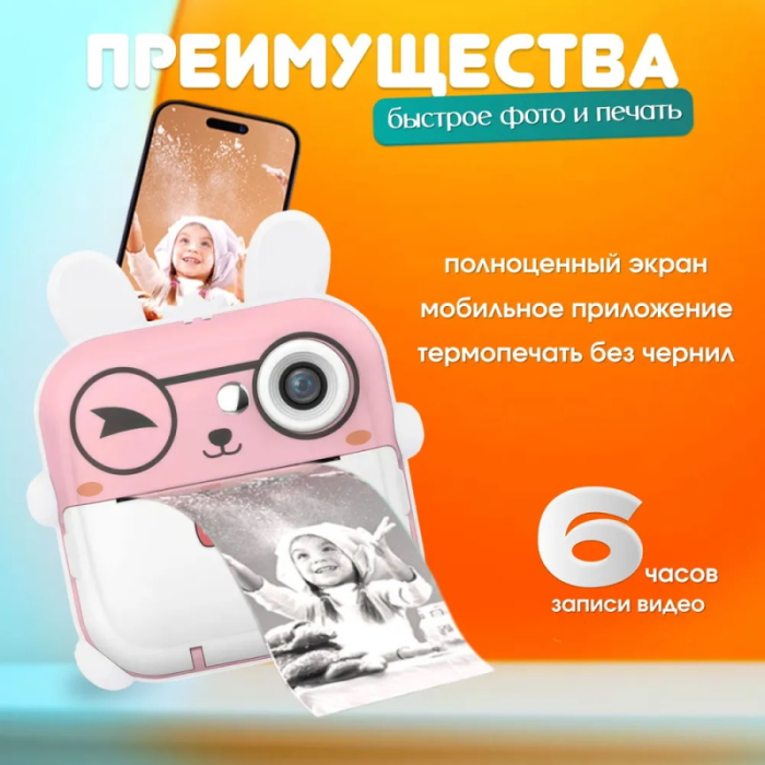 Детский фотоаппарат мгновенной печати раскрывает творческие навыки ребенка, фантазию и погружает в профессиональный мир фотографий. Увлекательный гаджет также интересен взрослому для игры с ребенком и не оставит равнодушными подростков. В функционале 3 игры развивашки, 20 веселых рамок и 10 фильтров для съемки фоток и видео. С помощью этого фотоаппарата ваш ребенок сможет воплотить свою фантазию в жизнь. Он сможет сохранить воспоминания о самых ярких моментах своей жизни, напечатав их сразу же после съемки. Благодаря возможности печатать раскраски, ваш ребенок сможет развивать свою творческую натуру и создавать уникальные произведения искусства.Этот фотоаппарат также позволяет печатать шпаргалки, что делает его незаменимым помощником в учебе. Ваш ребенок сможет легко и быстро создавать и печатать шпаргалки для повторения материала и улучшения успеваемости в школе. Печать фото и раскрасок осуществляется просто и удобно с помощью смартфона. Все, что нужно сделать, это подключить фотоаппарат к смартфону и выбрать нужное изображение или раскраску. Фотоаппарат мгновенно напечатает выбранный материал.