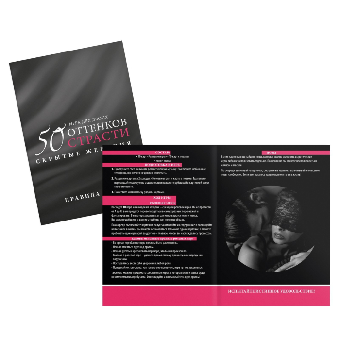 Кляп и маска в игре для пар «50 оттенков страсти. Скрытые желания» 3 в 1 (20 карт, маска, кляп), 18+