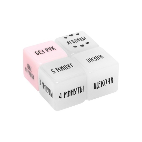 Внутри вас ждёт четыре кубика. Один из них подскажет место на теле партнера, второй - что нужно делать, третий - как это делать, а четвертый - время, за которое это нужно сделать.