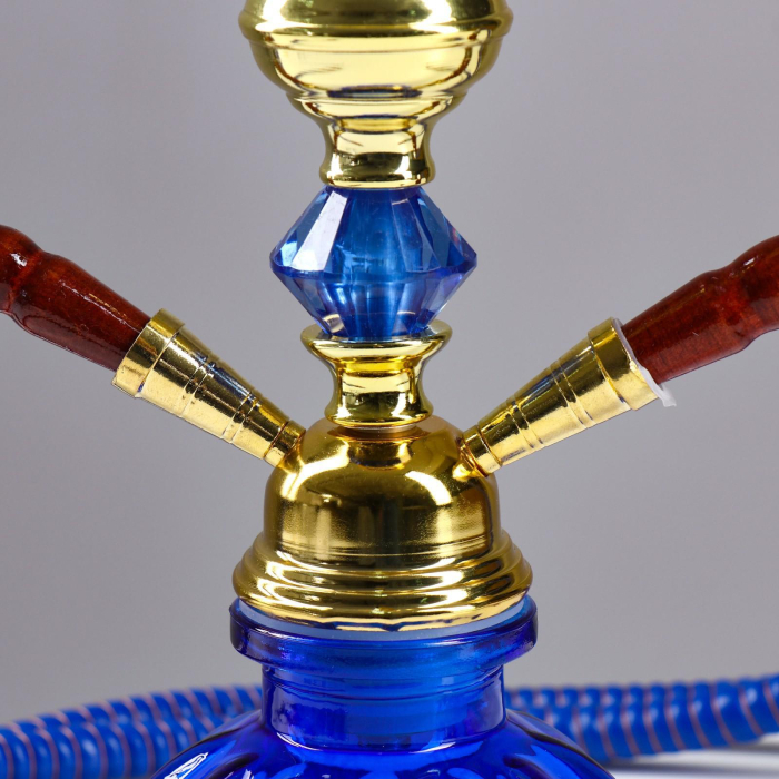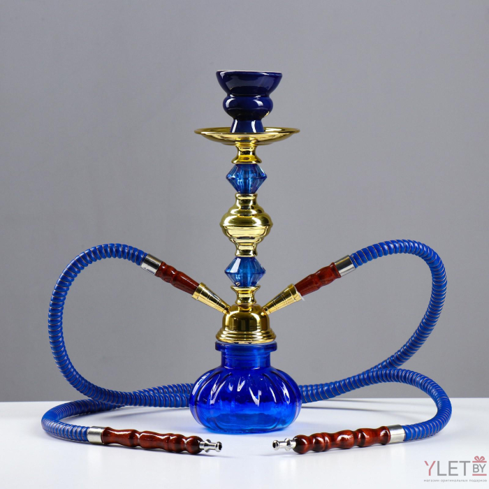 Кальян в сборе «Лагуна» высотой 33 см и с двумя шлангами в синем исполнении сделает ваш отдых по-восточному сказочным.