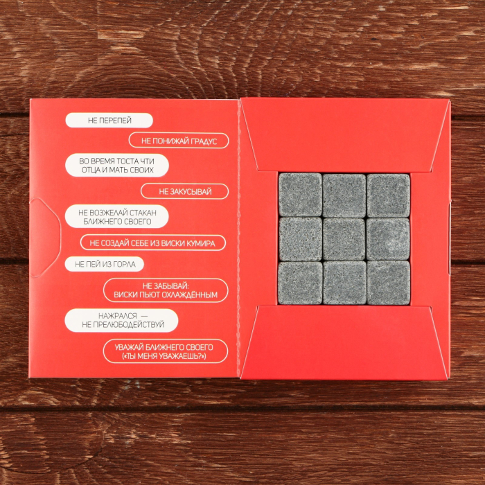 Камни для виски «10 алкогольных заповедей», 9 шт