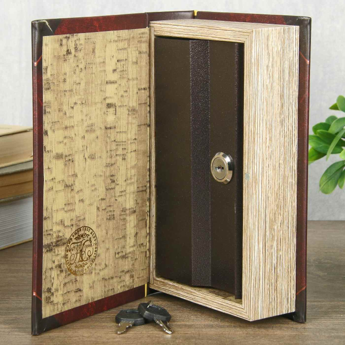 На вид такой предмет очень похож на обычную книгу и, находясь на книжной полке, не выделяется своим внешним видом из ряда настоящих томов и томиков. Однако на самом деле – это настоящий небольшой сейф, запирающийся на ключ и укрывающий от посторонних глаз то, что вам захочется туда спрятать.- Размер: 21 см × 13 см × 5 см
