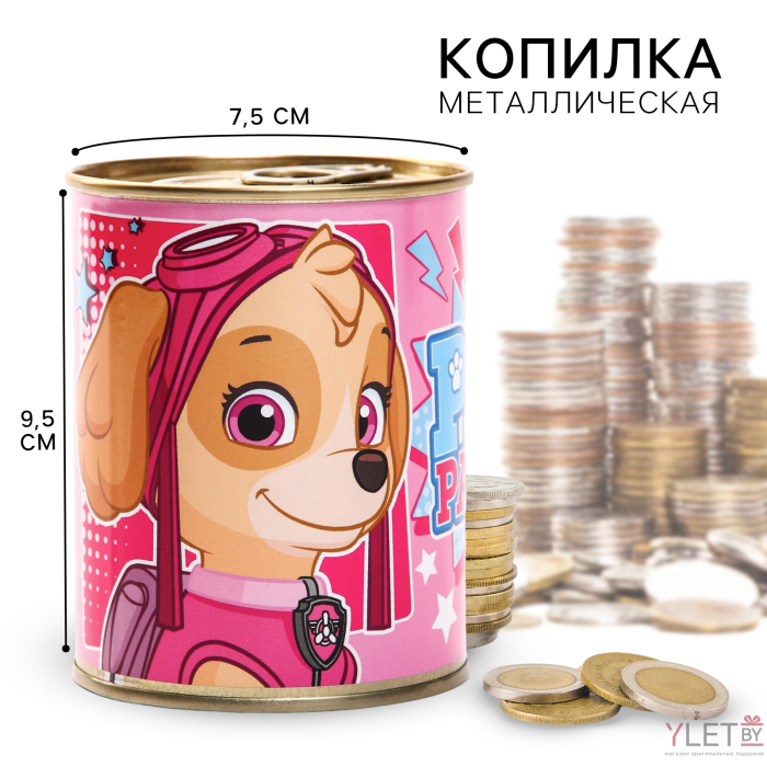 Копилка металлическая, 9,5 см х 7,5 см х 7,5 см "Скай", Щенячий патруль