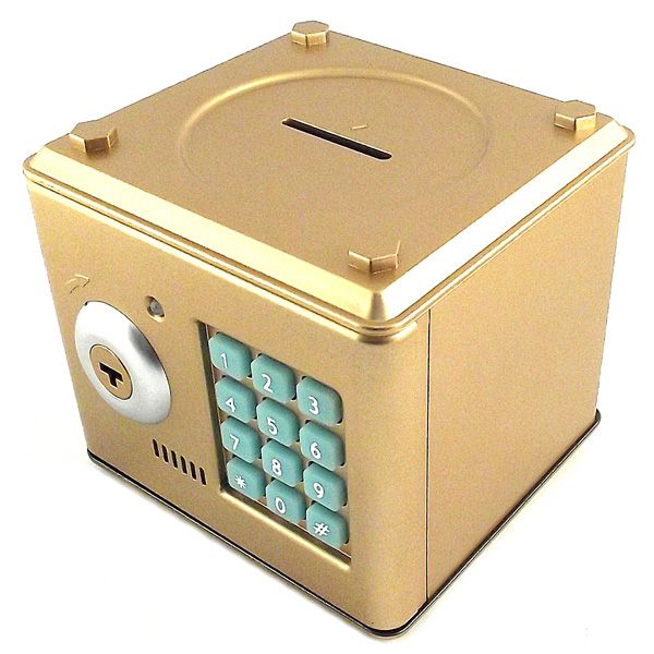 Высокое качество изготовления, пластика. Сейф - копилка игрушка электронная для монет и купюр. Питание от 3х батареек АА.
