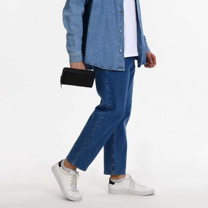 Мужской портмоне-клатч на молнии — это стильный и универсальный аксессуар, который идеально сочетает в себе элегантность и функциональность. Выполненный из высококачественной искусственной кожи в строгом черном цвете, этот клатч станет отличным дополнением к любому образу.