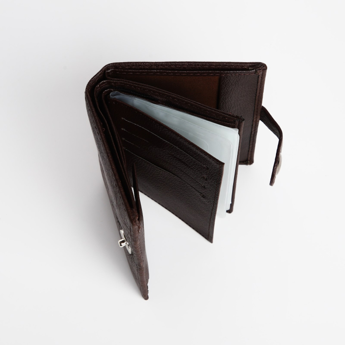 Мужское портмоне на магните 3 в 1 — это идеальный аксессуар для современной жизни, объединяющий в себе функциональность, стиль и удобство. Выполненное из высококачественной искусственной кожи в элегантном коричневом цвете, это портмоне станет не только практичным, но и стильным дополнением вашего образа.