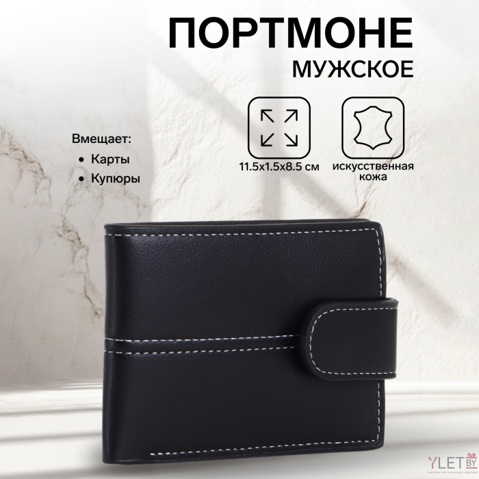 Портмоне мужское "Стиль" на кнопке, цвет чёрный