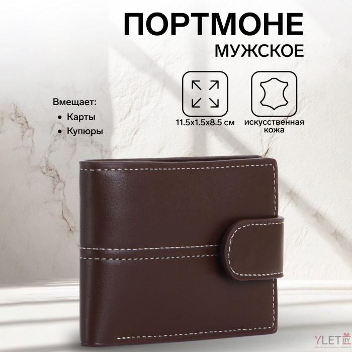 Портмоне мужское "Стиль" на кнопке, цвет коричневый