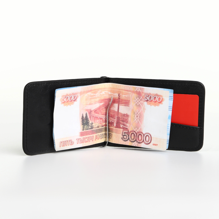 Зажим для купюр "Прайм", отдел для карт, монет, цвет чёрный