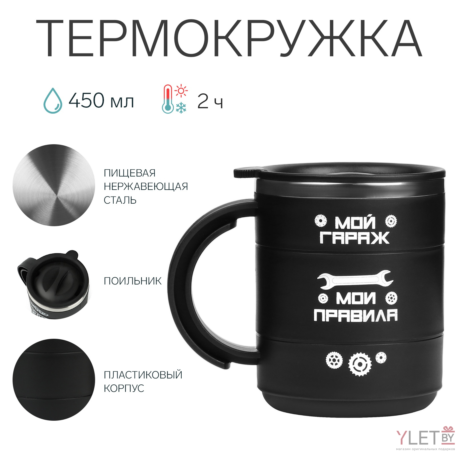 - Автомобильная кружка. Подойдёт в подарок автомобилистам. Термокружка сохраняет чай или кофе тёплыми на протяжении 4-6 часов, а в долгой поездке напиток можно подогреть прямо в кружке, подключив её к прикуривателю. Удобная форма и защищённое отверстие для питья не дадут горячей жидкости пролиться во время движения.