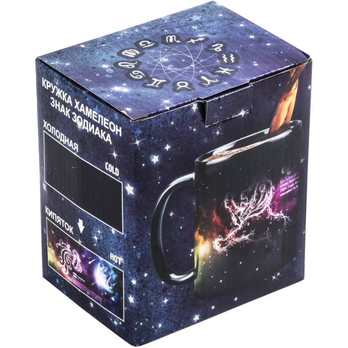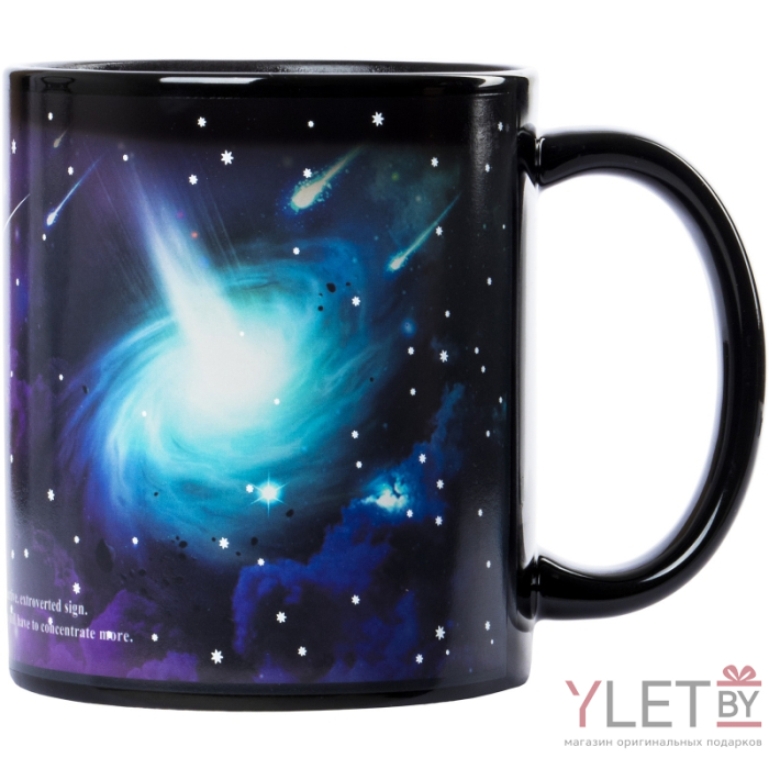Погрузитесь в магию астрономии с нашей удивительной кружкой-хамелеоном! Эта кружка, благодаря специальной термочувствительной краске на основе жидких кристаллов, меняет свой цвет при нагревании. Всего через несколько секунд после наливания горячего напитка верхний слой краски становится прозрачным, раскрывая великолепные картинки и надписи, скрытые от глаз.