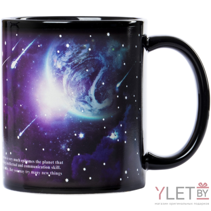Погрузитесь в волшебство астрономии с нашей уникальной кружкой-хамелеоном! Эта кружка, оснащенная специальной термочувствительной краской на основе жидких кристаллов, меняет свой цвет при нагревании. Всего через несколько секунд после наливания горячей жидкости верхний слой краски становится прозрачным, раскрывая скрытую под ним яркую картинку и текст.