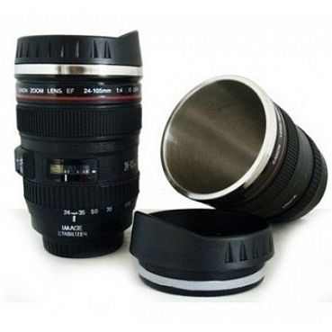 С такой кружкой фотограф может не только никогда не расставаться с любимой техникой,но и "похвастаться" перед друзьями необычным "объективом". Ведь согласитесь,очень приятно на фотоссессии попивать горячий или кофе из "объектива"- термокружки. Двойные стенки колбы термоса изготовлены из металла.