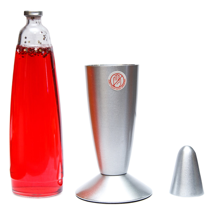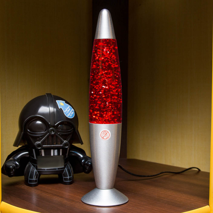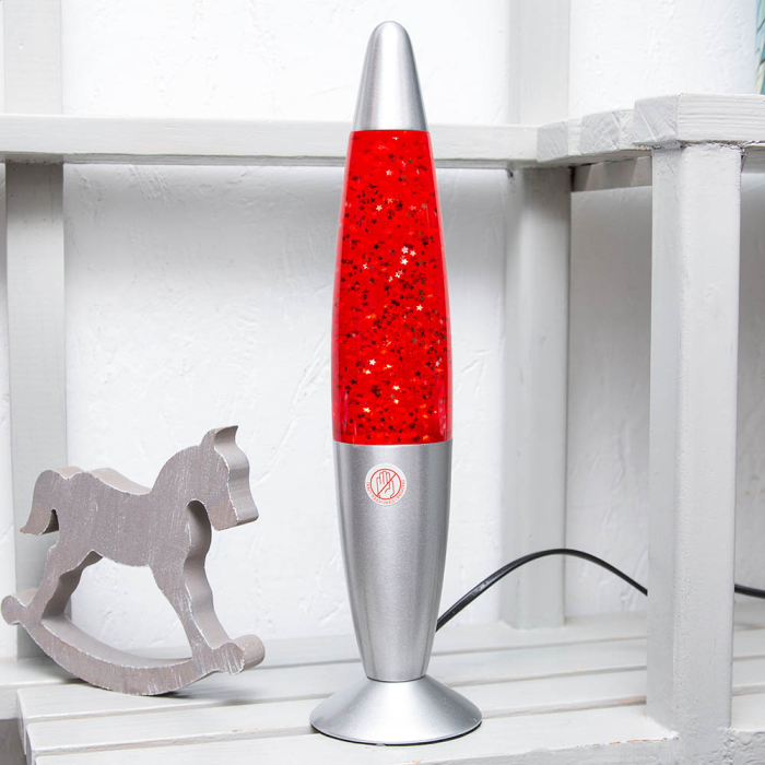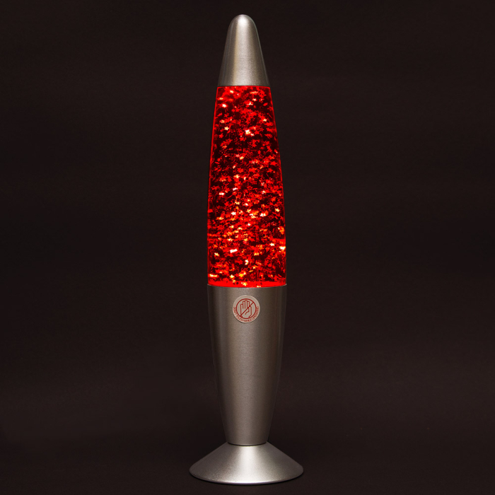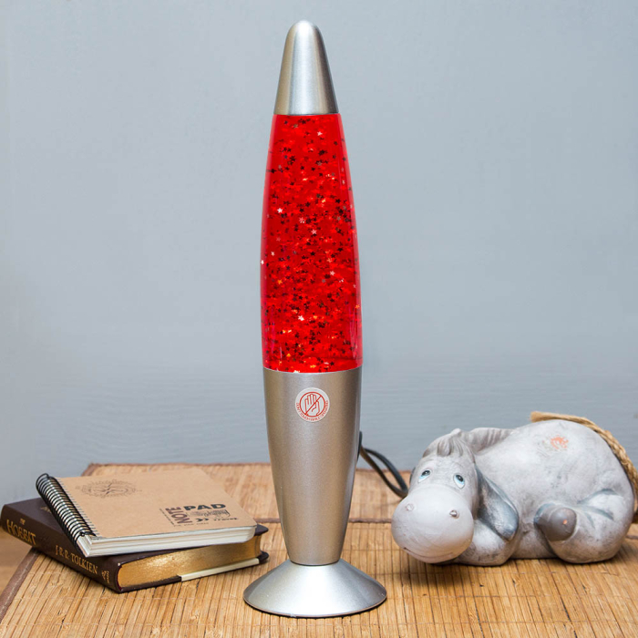 Лава лампа с блёстками в сером корпусе 35 см Красная