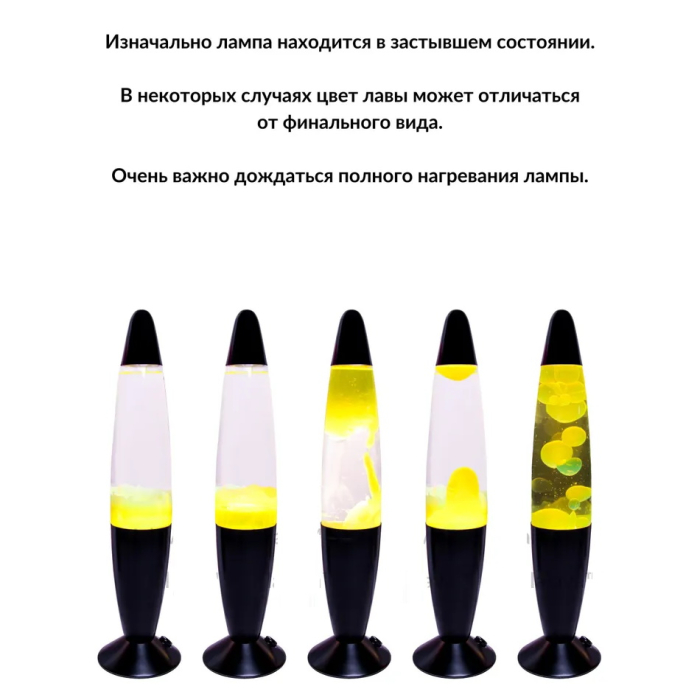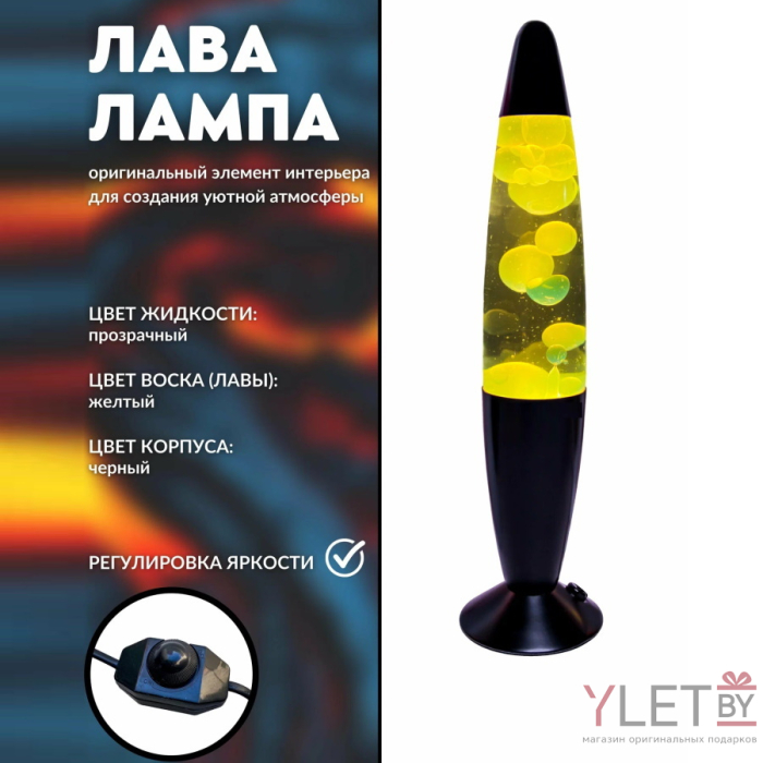 Лава лампа с воском в черном корпусе 42 см Желтая