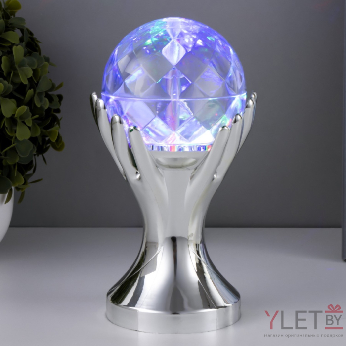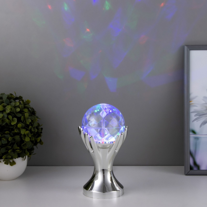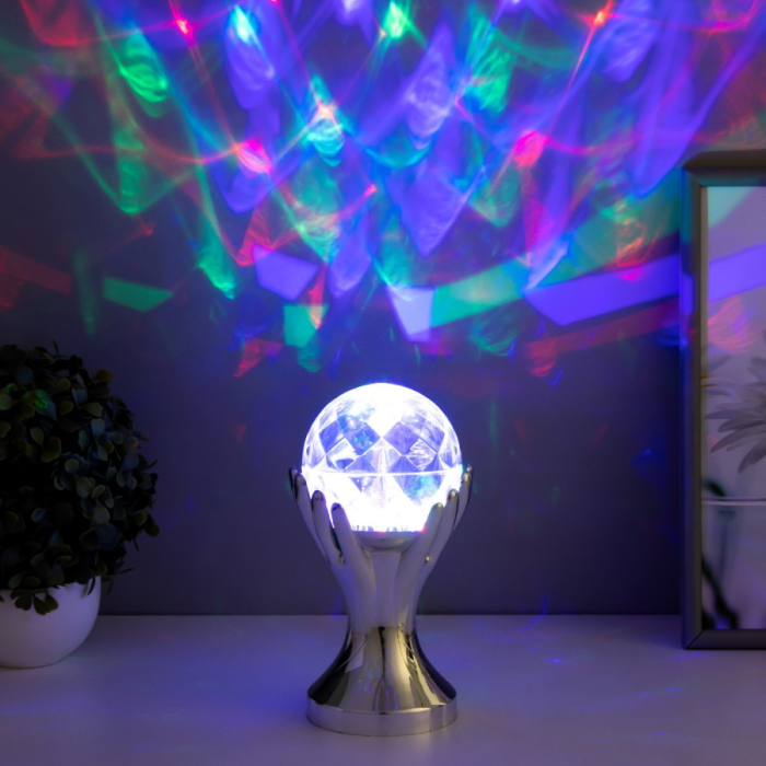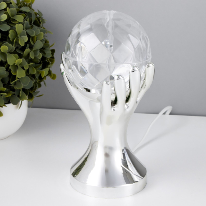 Светильник проектор ночник вращающийся диско-шар "Рука", серебро