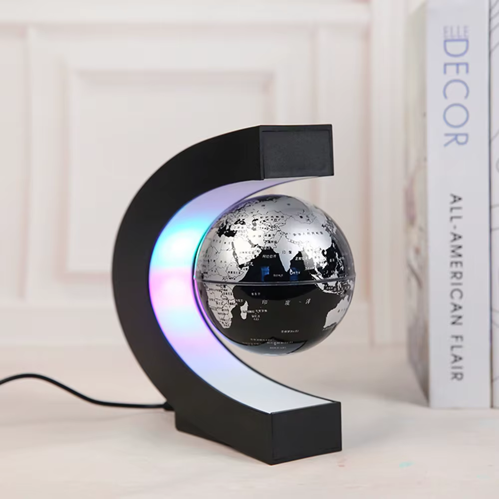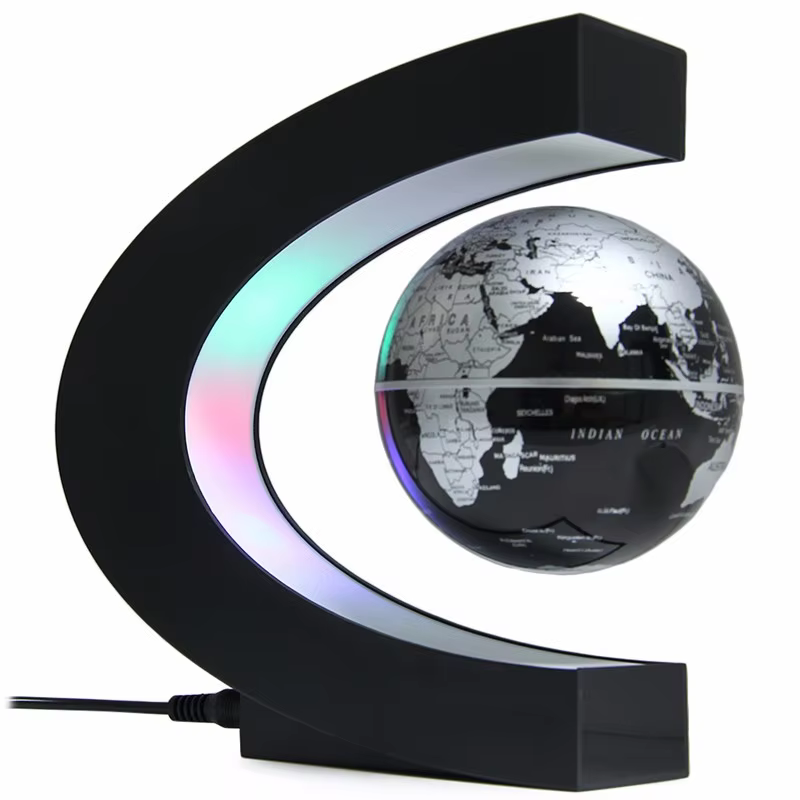 Глобус на магнитном поле - настоящий "гость из будущего". Когда вы включаете подставку в виде подковы в сеть (220 V), глобус повисает в воздухе безо всякой опоры. Это яркий оригинальный подарок. Будет прекрасно смотреться на рабочем столе как символ динамичности, высокотехнологичности и успешности бизнеса, а также его глобального развития.