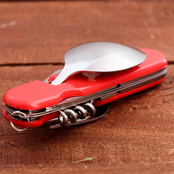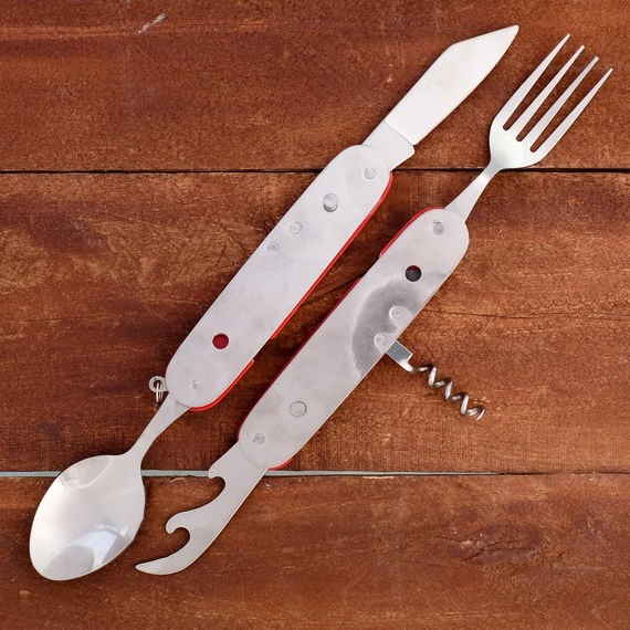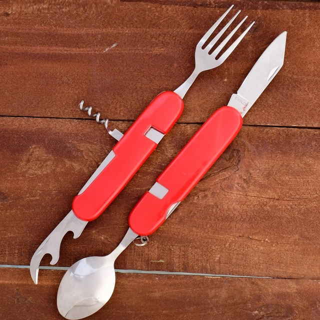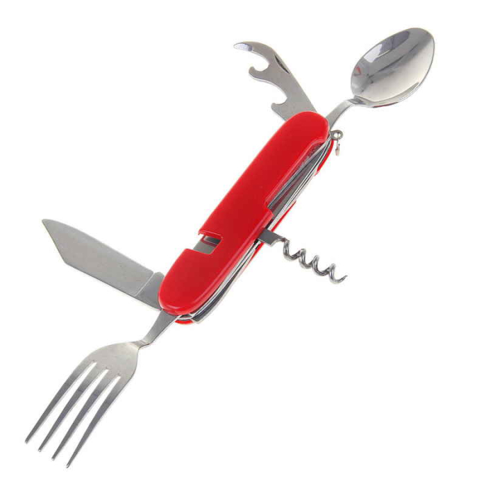 - Комплектация: ложка, вилка, нож, штопор, открывашка