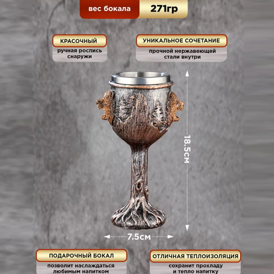 Стильный и оригинальный бокал. Решили устроить вечеринку? Такие бокалы приукрасят любое праздничное мероприятие и сделают его оригинальнее и веселее. Хватит пить из обычных бокалов! Время меняться и переходить на стильные вещи. Бокал выглядит просто невероятно! Бокалы из этой серии выполнены в готическом стиле, поэтому будут прекрасно смотреться на тематической вечеринке или на Хэллоуин. Наполните его Вашим любимым напитком, и вы не сможете удержаться от восхищения. Бокал выполнен из керамических материалов. Внутри бокал выполнен из нержавеющей стали, поэтому Ваш напиток будет сохранять температуру дольше, чем обычный бокал. Помимо основных своих функций, бокал послужит прекрасным украшением кухонного интерьера и станет памятным сувениром.