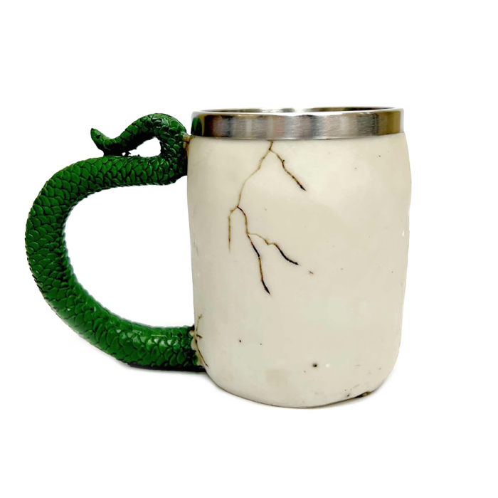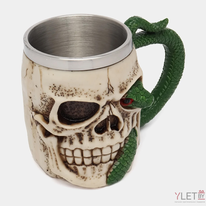 Кружка Череп с зеленой змеей (металл внутри)