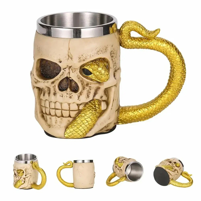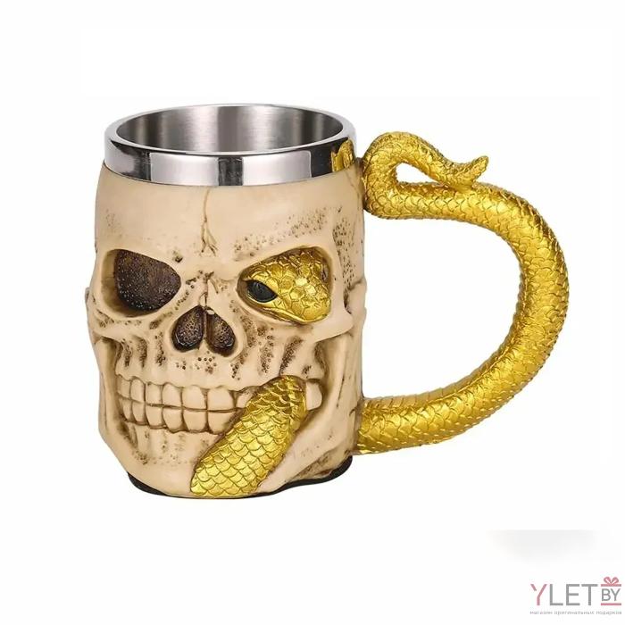 Кружка Череп с желтой змеей (металл внутри)