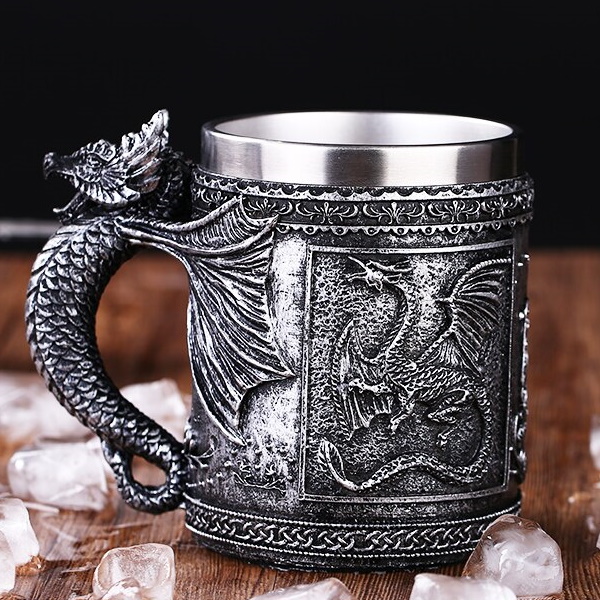 Кто ж не любит драконов?! Даже те, кто никогда не внедрялся в мифологию знает этих легендарных существ. Многие обожают их не в последнюю очередь благодаря крутому внешнему виду, даже без кожи, что шикарно передано на это изделие. Каждый будет рад заиметь такой аксессуар в свое пользование, но только представте восхищение фаната Скайрима) С такой кружкой хоть на Высокий Хротгар, хоть на Солтстейм, за новыми драконьими душами!