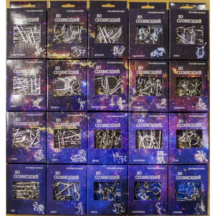 Представляем уникальную коллекцию металлических головоломок, созданную для развития IQ как детей, так и взрослых. В этой серии каждый сможет найти свой знак зодиака и установить связь с восемью знаменитейшими созвездиями нашей галактики. Все головоломки элегантно оформлены в яркие коробочки, украшенные названием и изображением соответствующего созвездия.