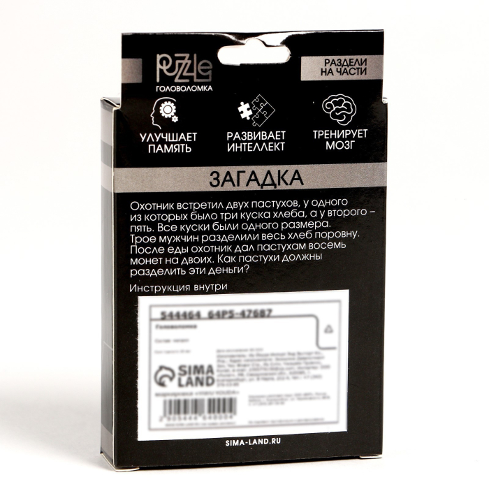 Головоломка «Игры разума. Раздели на части» №10 — это уникальная игра, способствующая развитию эрудиции, воображения, логического мышления и смекалки.