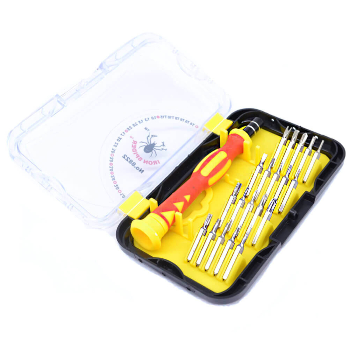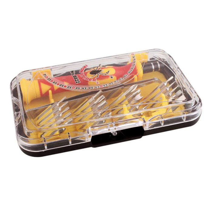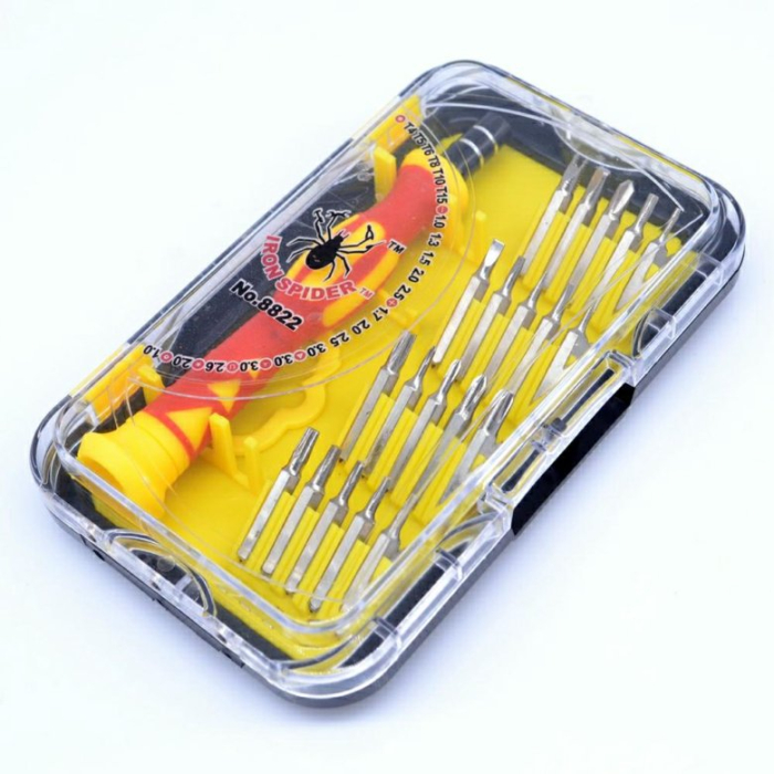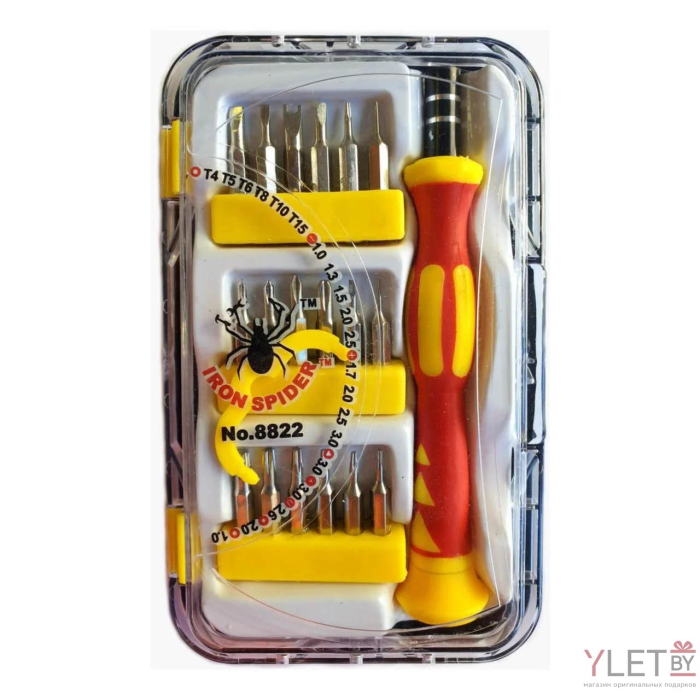Набор отверток IRON SPIDER № 8822, 17 предметов (T4 / T5 / T6 / T8 / T10 / T15 / -1.0 / -1.3 / -1.5 / -2.0 / -2.5 / + 1.7 / + 2.0 / + 2.5 / + 3.0 / 3- гр.3.0 / 3-гр.мал.3.0 / U2.6 / * 2,0 / кругл.1.0) Это плоские, крестообразные и многогранные наконечники, которые помогут Вам в любой ситуации.