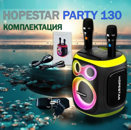 Колонка Hopestar Party 130 - новая портативная колонка оснащена новым Bluetooth 5.3 и емкостью аккумулятора 22000 мАч, что обеспечивает до 8 часов непрерывного воспроизведения музыки без подзарядки. Она имеет LED подсветку и объемный звук для полного погружения в музыку.