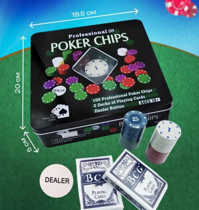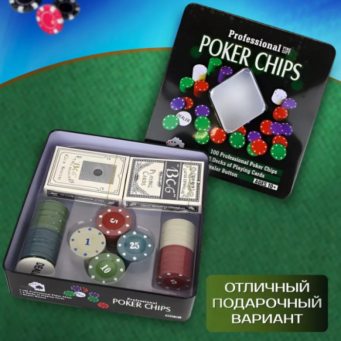 ---Набор для покера 100 фишек с номиналом жестяная коробка