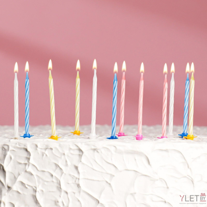 Свечи для торта Спираль, набор: 24 шт и 12 подставок