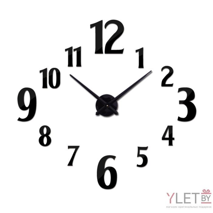 Создавайте часы в собственном стиле, проявляйте изобретательность и креативность. Не обязательно располагать числа по кругу — придайте аксессуару необычную форму, поменяйте диаметр циферблата, используйте не все элементы. Комплектующие легко клеятся на стену и без труда снимаются.