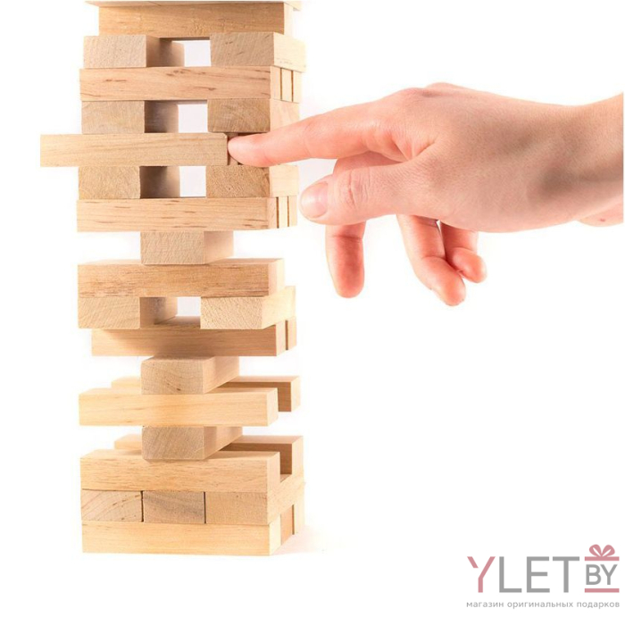Хорошо известная и признанная игра Jenga. Задачей игроков является у становка целой башни, а затем по очереди вынимание по отдельности ее элементов. Извлеченный элемент следует поместить на вершине башни. Проигрывает игрок, который разрушит башню.