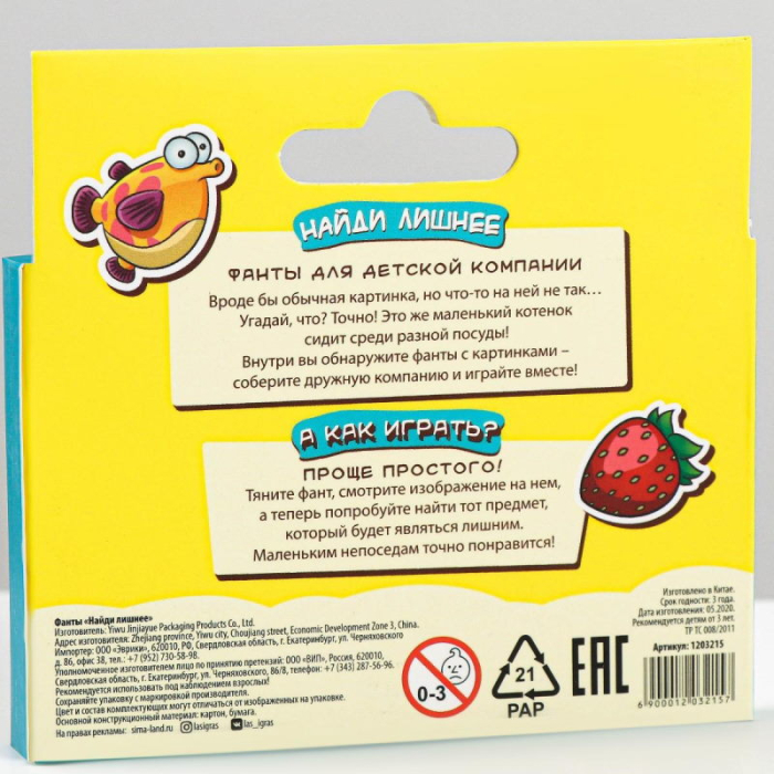 В наборе фантов «Что не так?» вы обнаружите загадочные карточки с картинками. В каждой есть подвох. Предстоит угадать, что же это!