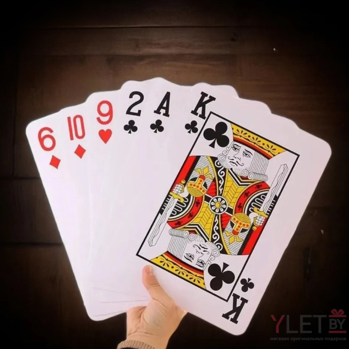 - Универсальность: Этот набор идеально подходит для различных игр: от классических карточных игр, таких как покер и бридж, до веселых и динамичных игр с друзьями. Гигантские карты также могут использоваться для проведения викторин, шоу-игр или развлекательных мероприятий.