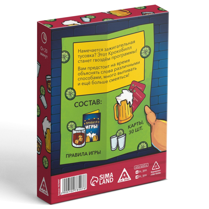 Настольная игра для взрослых «Бухой крокоБилл», 30 карт, 18