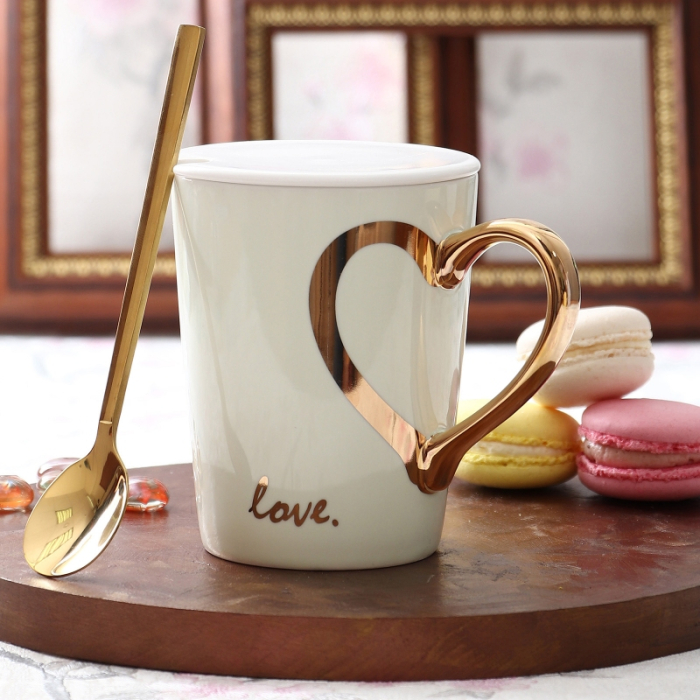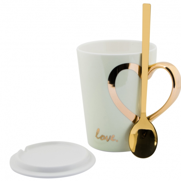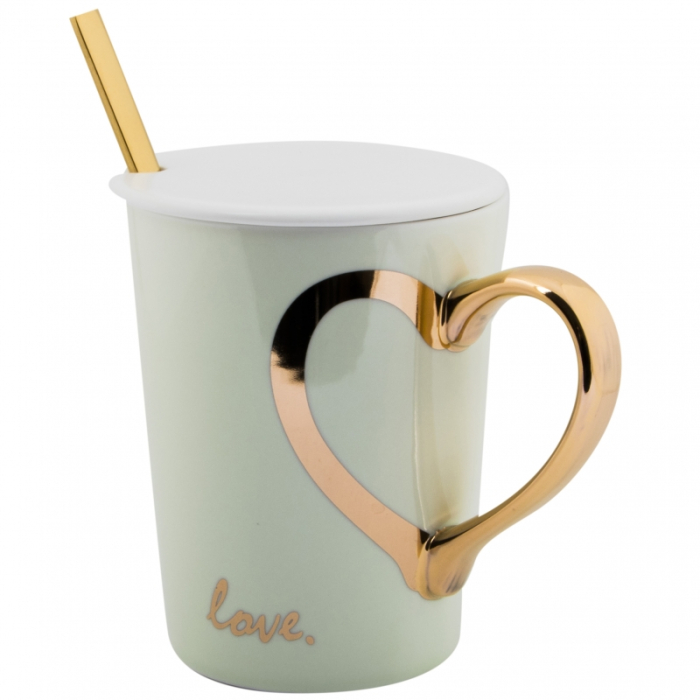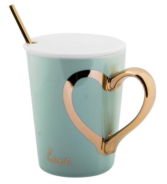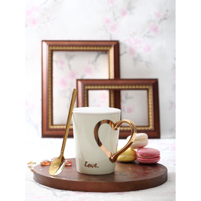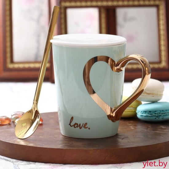 Подарите свои чувства с помощью уникальной кружки, на которой красуется надпись «LOVE» и оригинальный рисунок, образующий вместе с ручкой очаровательное золотое сердечко. Этот стильный аксессуар способен выразить вашу любовь так же eloquent, как и стихотворение, наполненное нежностью и страстью.