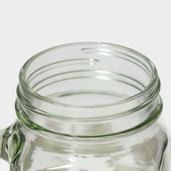 Банка с ручкой оснащена удобной ручкой и крышкой, она завоевала уважение тех, кто обожает здоровое питание. В оригинальной кружке можно даже готовить полезные завтраки, например, гранолу с йогуртом. Часто используется в барах для подачи коктейлей и лимонадов.