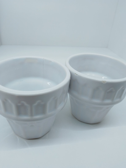 • ОПИСАНИЕ ДЕФЕКТА: мелкие сколы эмали по краям чашки, трещина на одной чашке (фото).