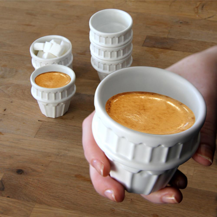 Набор чашек "Пизанская башня" - идеальное сочетание чашек для чая или кофе эспрессо. Вы также можете использовать их в качестве соусниц. Нижняя чашка немного большего размера-идеально подойдет под сахарницу. Чашки исполнены из высококачественной керамики.