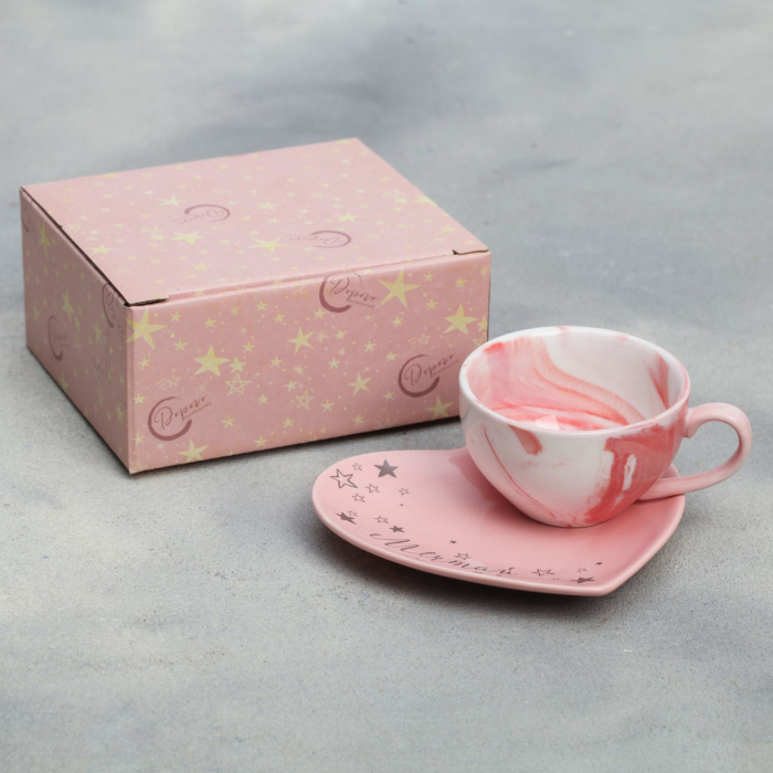 Подарочный набор керамический «Мечтай»: кружка 120 мл, блюдце, цвет розовый